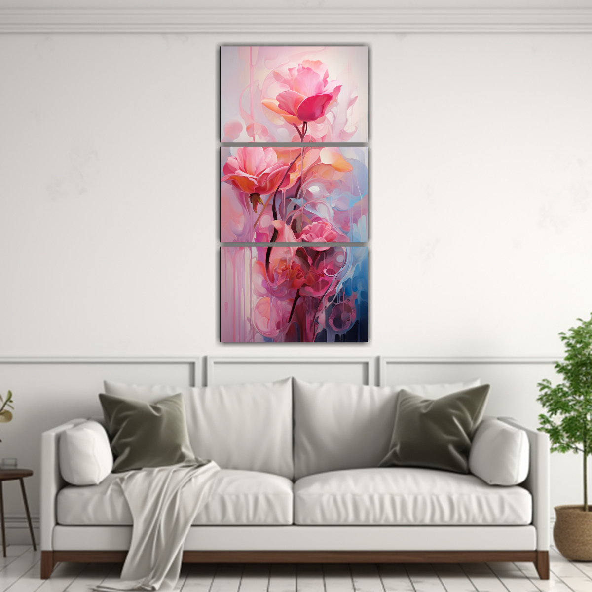 Decora tus espacios con los Set 3 Cuadros Composición Mágico en tonos rosas de DecoCuadros Diseños exclusivos y entrega rápida en Santiago