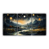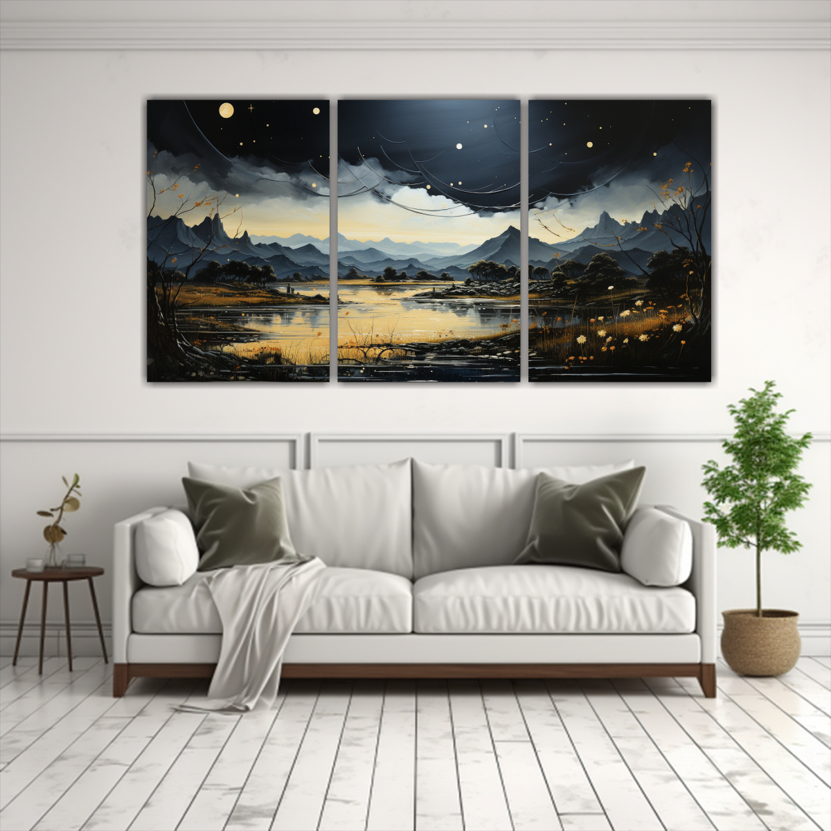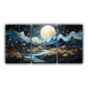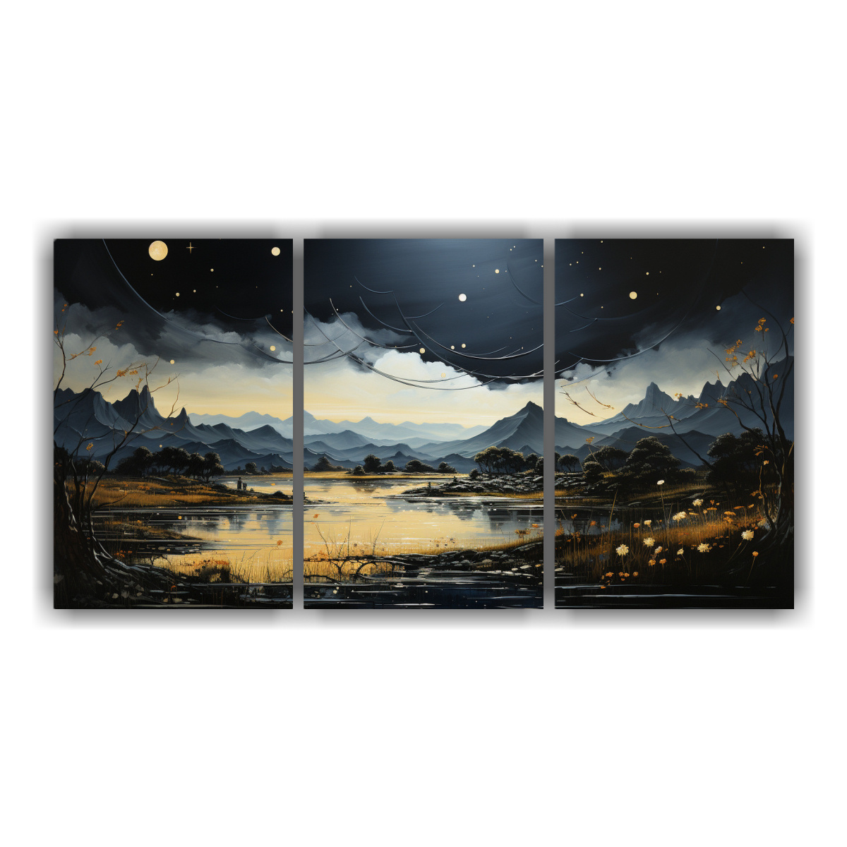 Set 3 Cuadros Creativos Para Cuarto Con Una Pintura De Una Luna Cerca De Las Montañas Con Estrellas.
