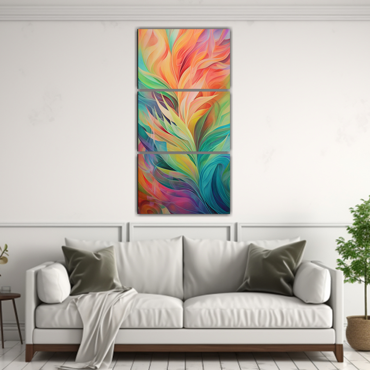 Coloca este set de cuadros en tu sala de estar para crear un ambiente moderno y vibrante Combínalos con muebles en tonos neutros y accesorios en colores complementarios para lograr un equilibrio visual perfecto