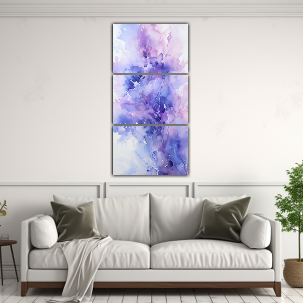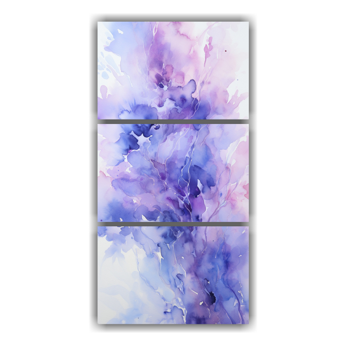 Decora tu espacio con los elegantes Set 3 Cuadros Decorativos Abstractos con Salpicaduras de Acuarela Artistri Disponibles en plateado, violeta, gris, lila y turquesa Impresos en tela de alta calidad con bastidores de madera