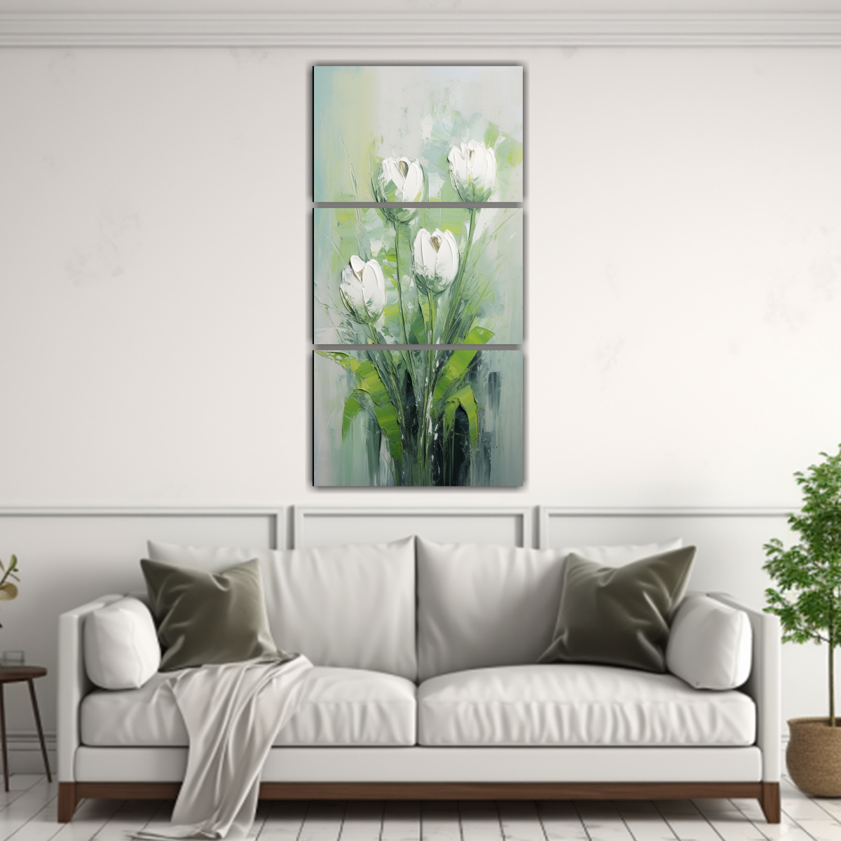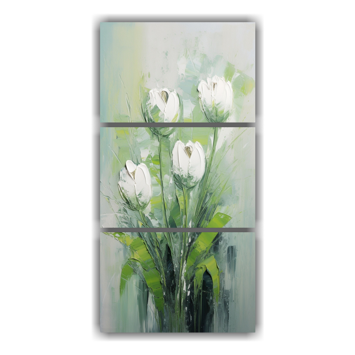 Set 3 Cuadros Decorativos Exposición A Tulipanes Verdes Pintura En Lienzo Estilo