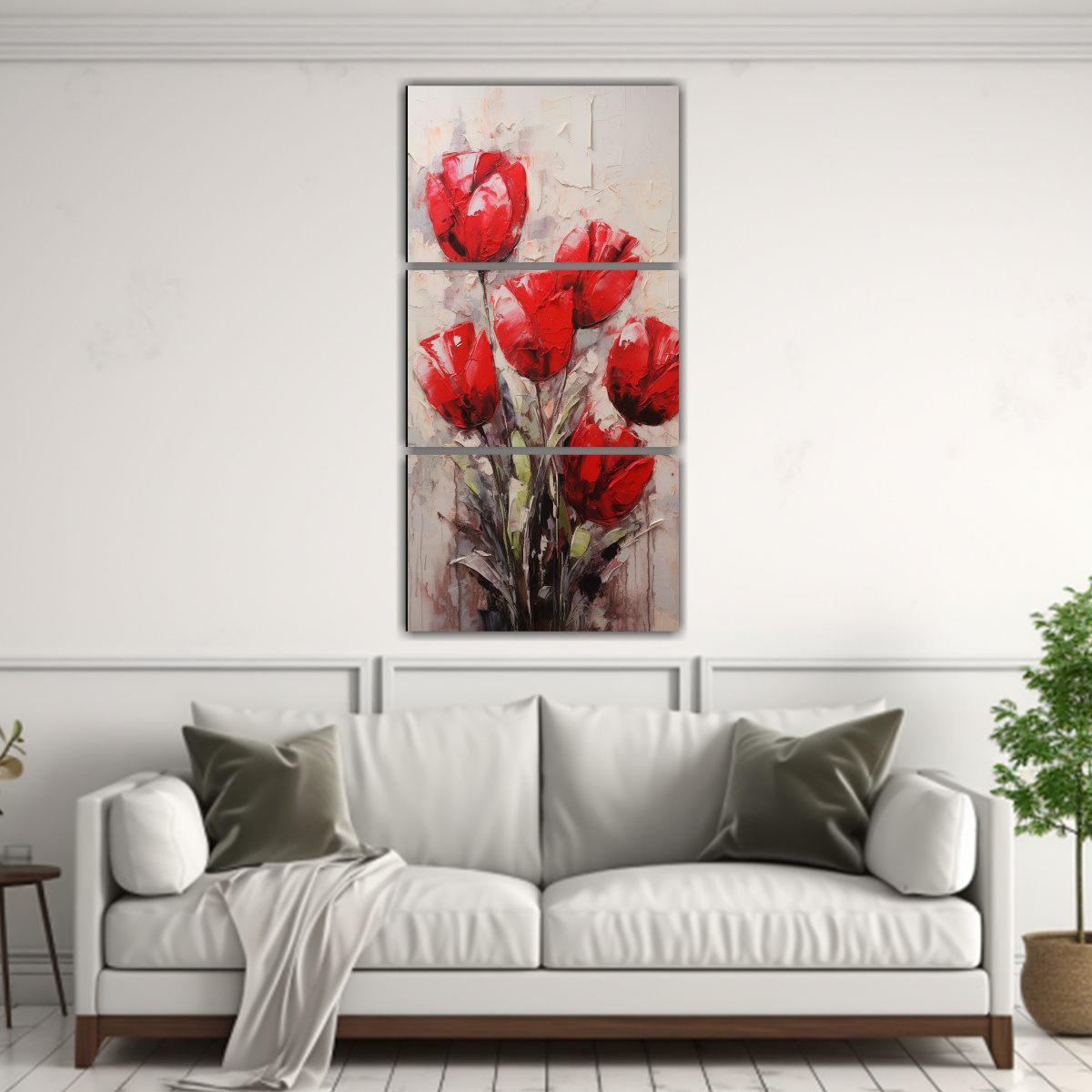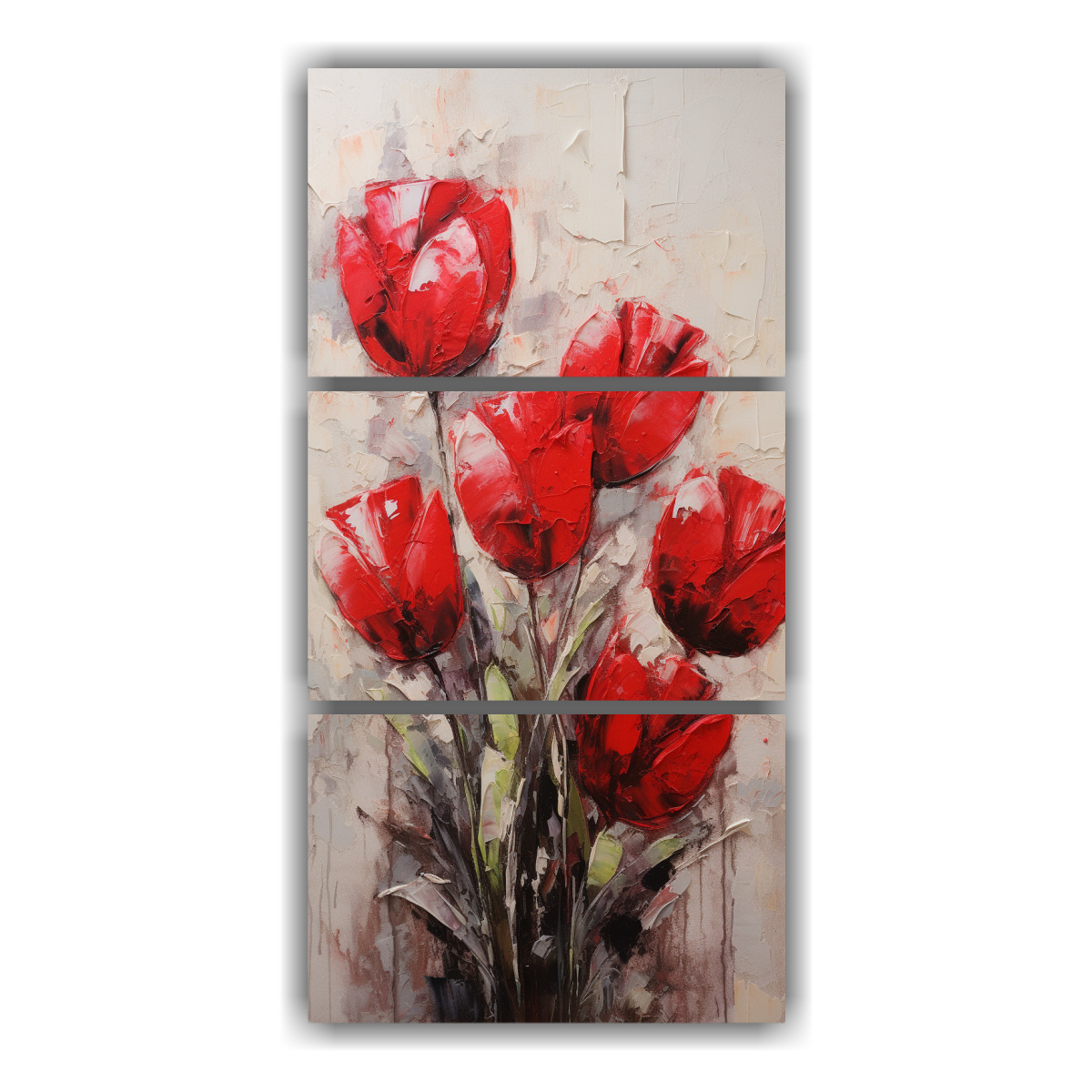 Set 3 Cuadros Impreso Llamativo A Red TULIPS En Lienzo Estilo R