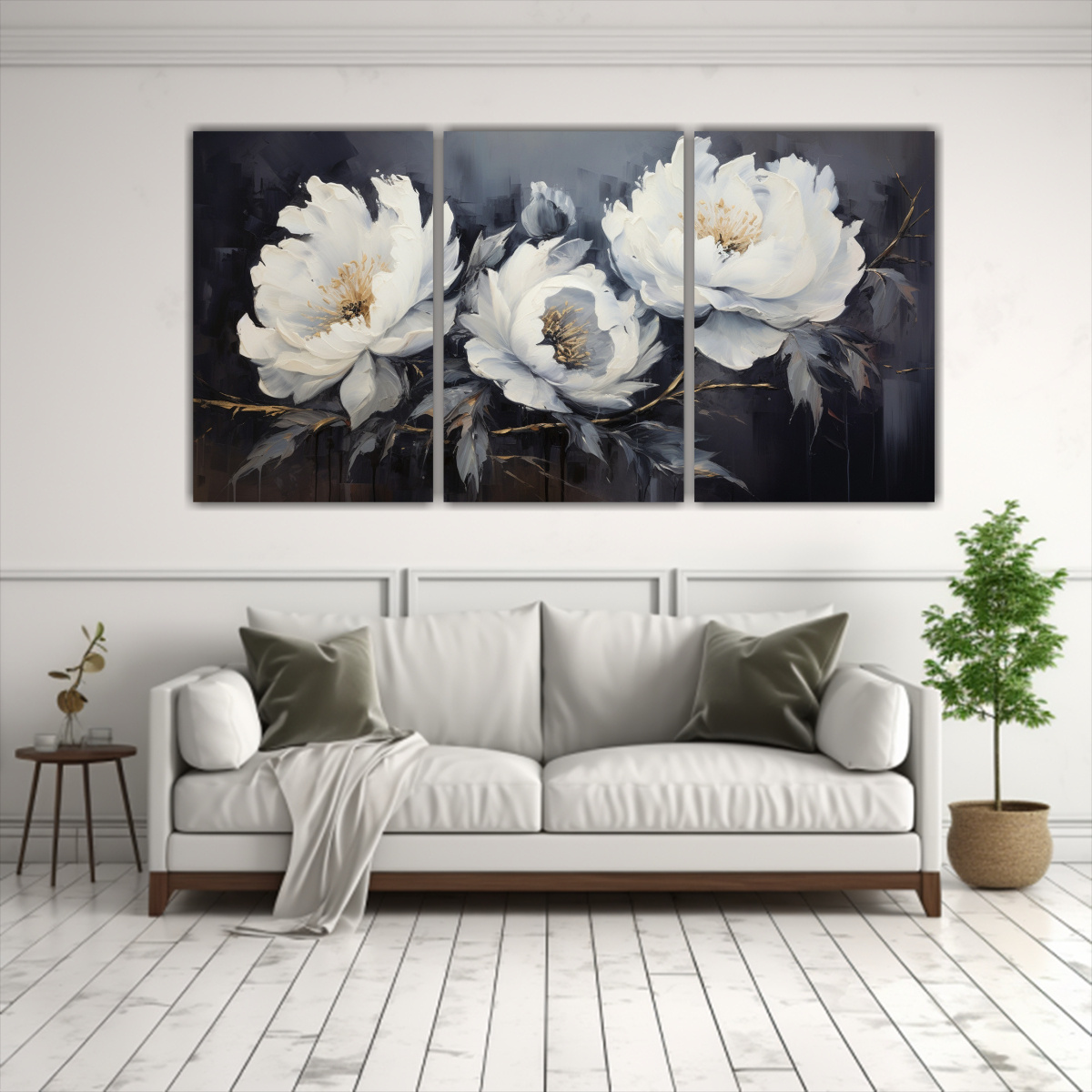 Set 3 Cuadros Moderno Motivo De Peonías Negras En Lienzo Estilo Decorativo