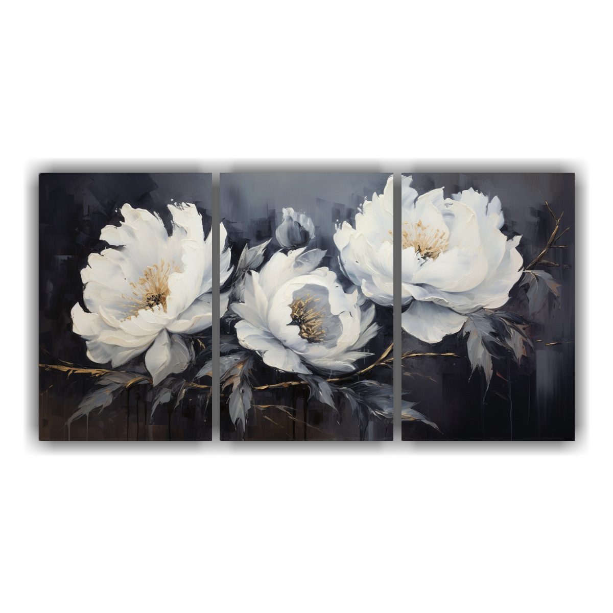 DecoCuadros – Set 3 Cuadros Moderno con motivos de peonías negras en lienzo estilo decorativo Precios económicos y entregas rápidas