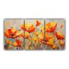 Set 3 Cuadros Pared Vintage Textura Amarillo Y Plata Flores En Lienzo