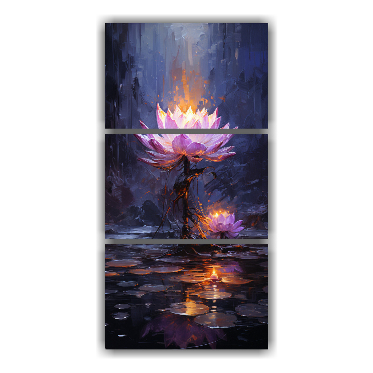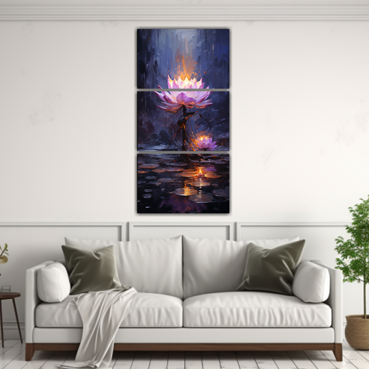 Estos cuadros lucirán espectaculares en tu sala de estar, creando un ambiente sofisticado y moderno Colócalos juntos formando una fila horizontal sobre un sofá oscuro para resaltar su luminosidad y darle un toque de elegancia a tu espacio