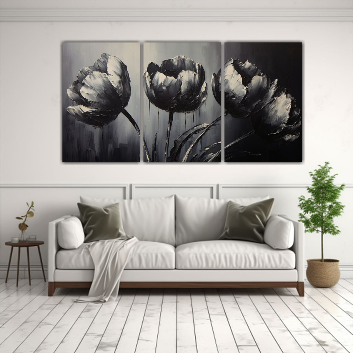 Set 3 Lienzos De Tela Calidos Con Llamativo Pintura Negra De Tulipanes En Lienzo Al Estilo De Decoración Pinturas