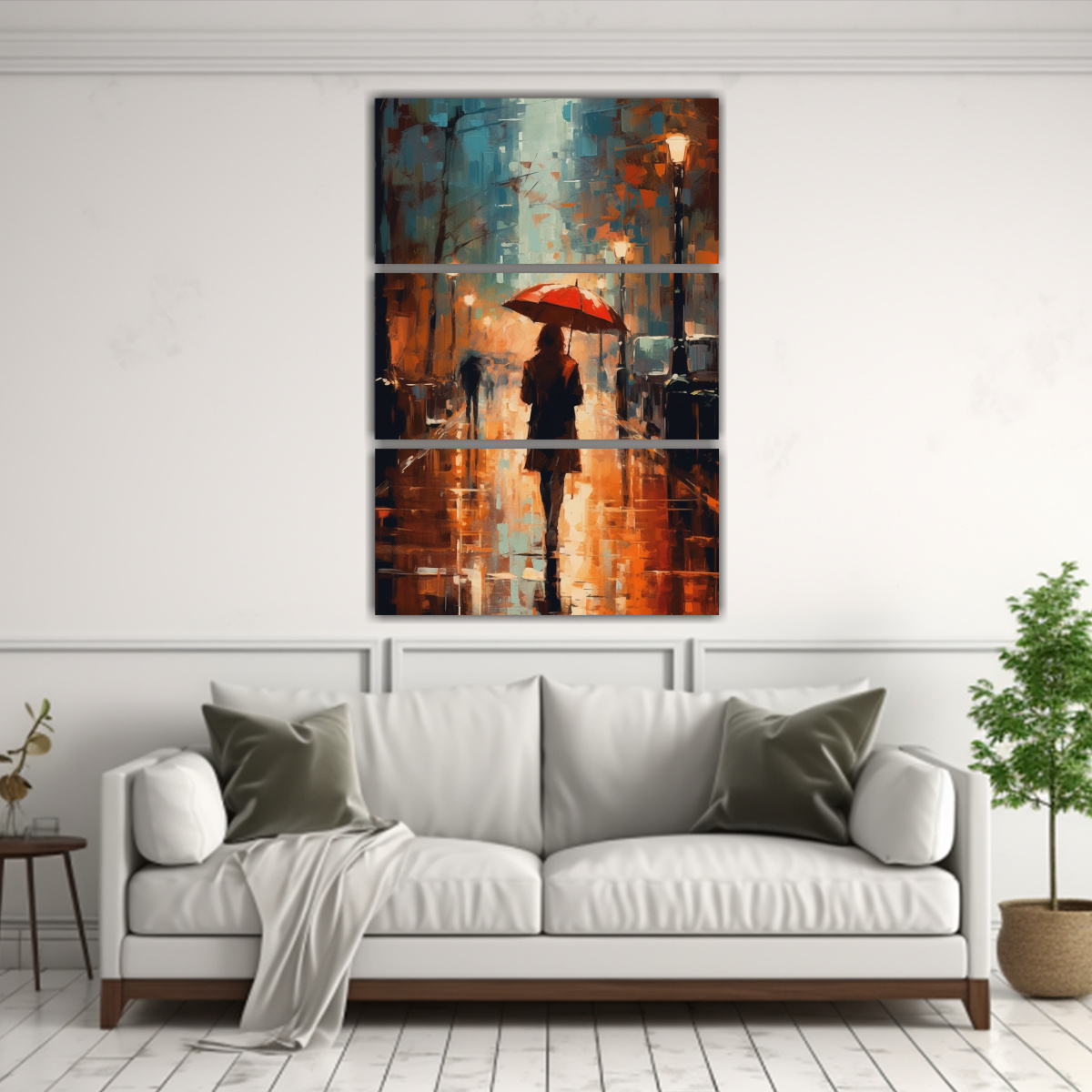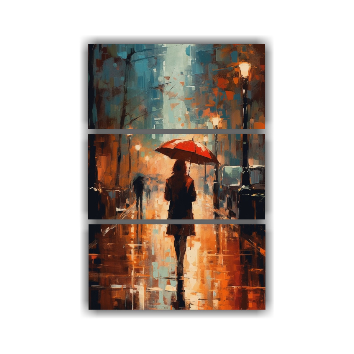 Set 3 Lienzos De Tela Concepto Full Color Cinético Abstracto Impresionismo Un Paraguas Se Sostiene