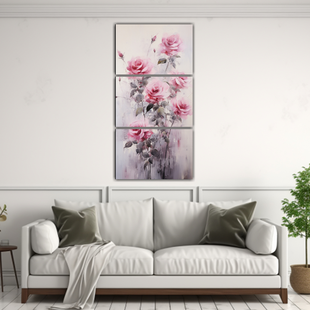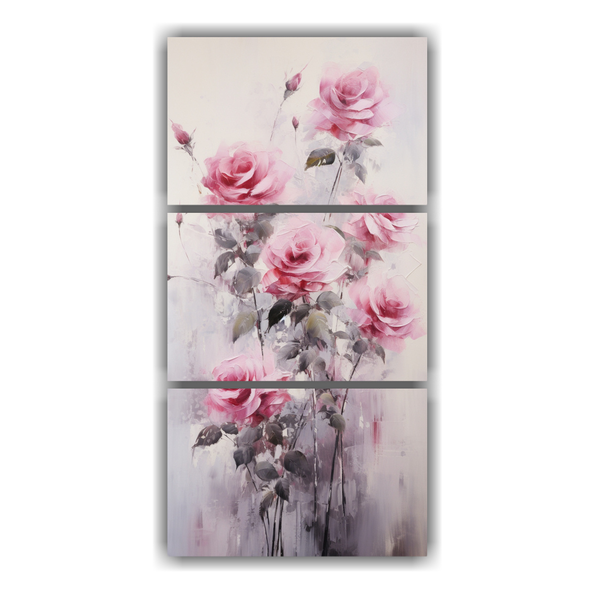 Set 3 Lienzos De Tela Conceptual Combinación De Pinturas De Decoración De Rosas Rosas En Estilo P