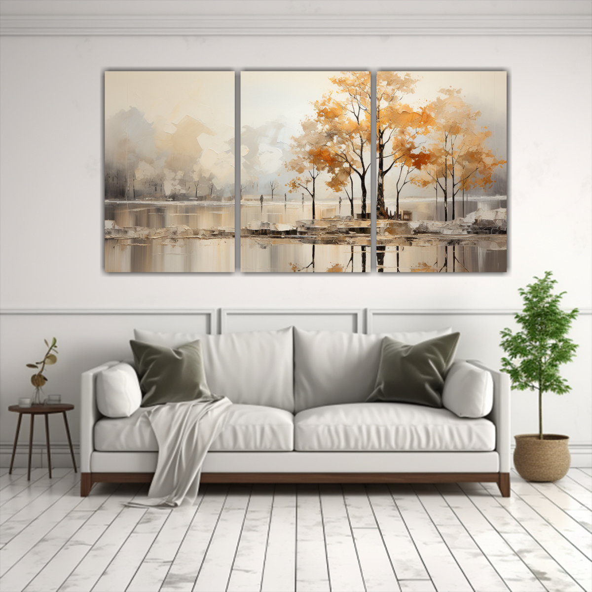 Set 3 Lienzos De Tela Cuadro Elegante De árboles En Plata Y Blanco