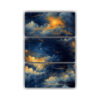 Este set de 3 lienzos horizontales con luna, estrellas y río sobre fondo negro es perfecto para decorar tu sala de estar Te recomendamos colocarlos sobre un sofá de color neutro para que resalten y creen un ambiente relajante y misterioso Además, puedes complementar la decoración con cojines en tonos plateados y una lámpara de mesa con un diseño moderno ¡Transforma tu espacio con estilo y elegancia!