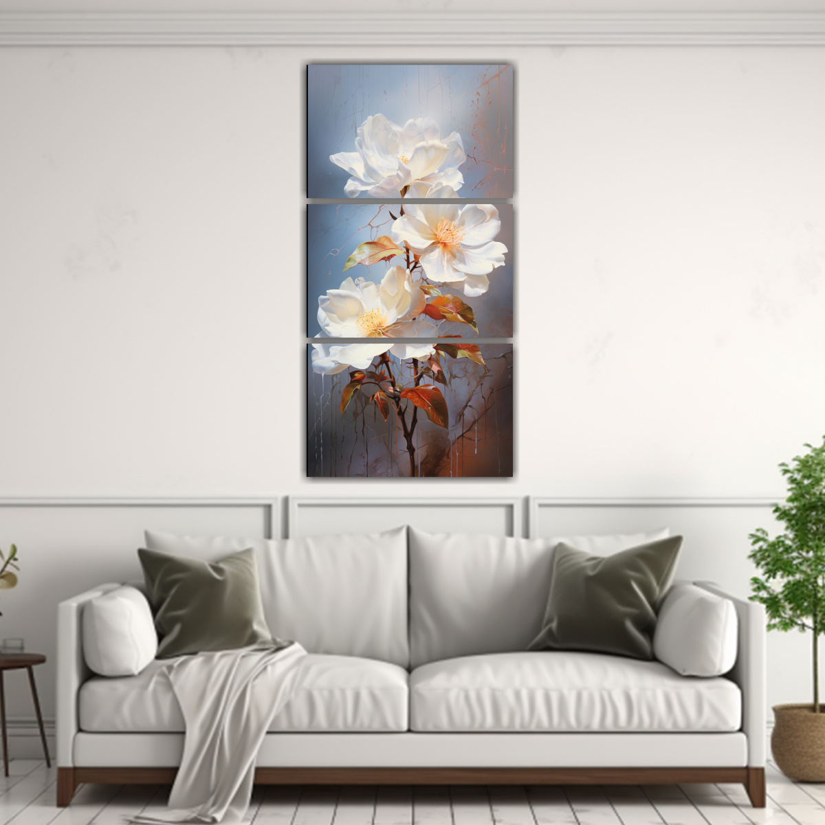 Set 3 Lienzos Hermoso Temática A No Olvido Flor Blanco Abstracto.
