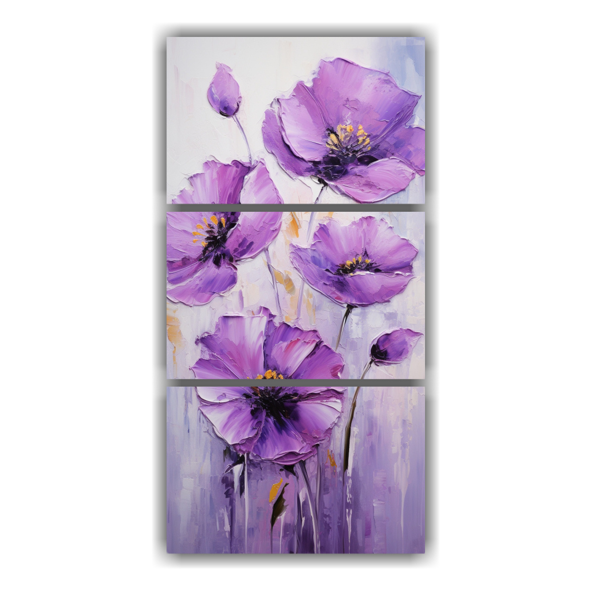 Decora tu hogar con el Set 3 Lienzos Imagen Representación Pintura Amapolas Púrpuras estilo decorativo en lienzo de alta calidad Dale un toque de elegancia y color a tus paredes con nuestras impresiones de primera calidad Encuentra los mejores precios y diseños exclusivos en nuestra tienda online
