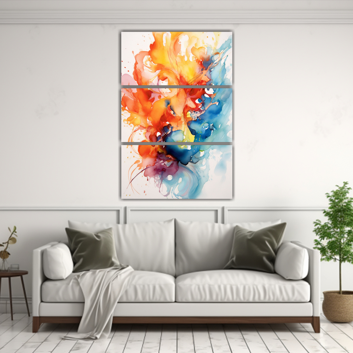 Set 3 Lienzos Impreso Impacto Visual Pintura Abstracta Al Agua Con Colores Vivos