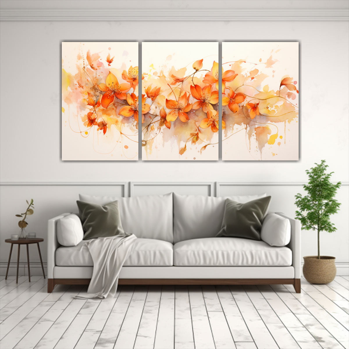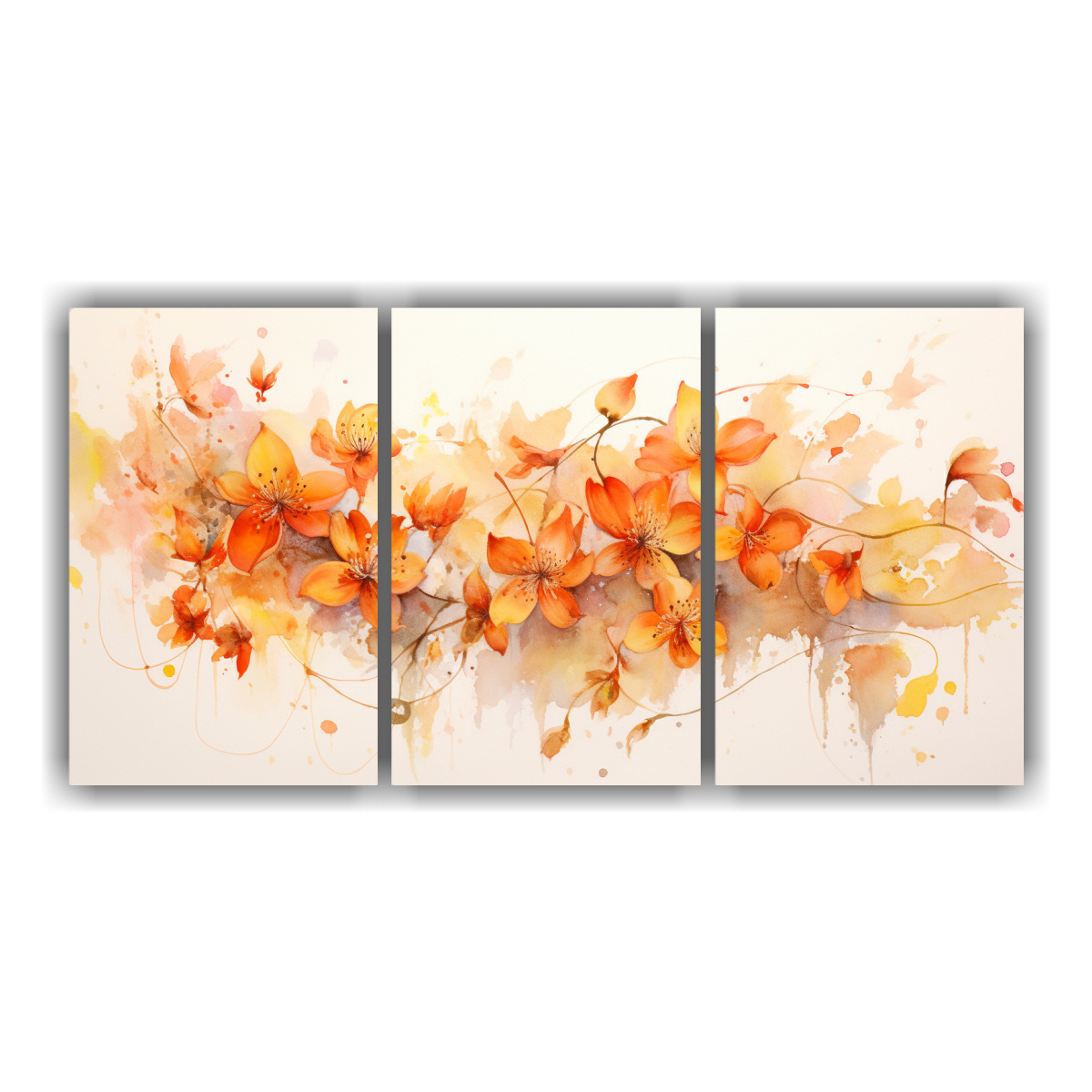 Set 3 Lienzos Impreso Juveniles Pintura Abstracta De Flores De Tilo En Colores Naranja Y Dorado