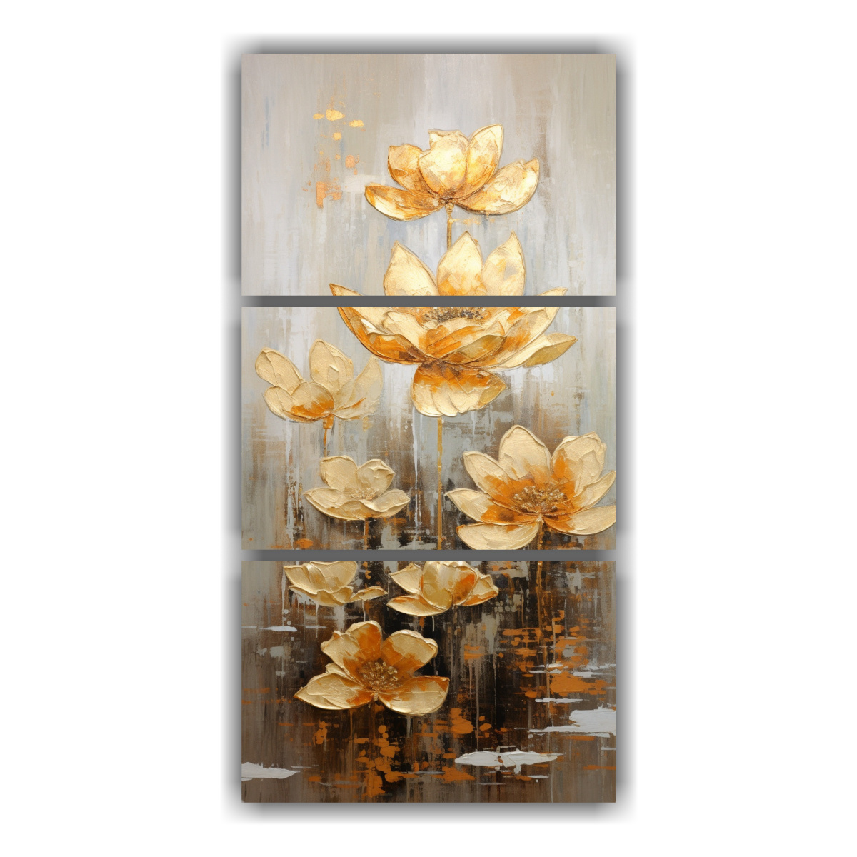Set 3 Lienzos Inspiración Resistente A Pintura De Loto Dorado Sobre Lienzo Al Estilo De G