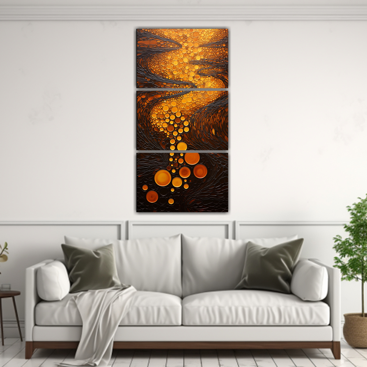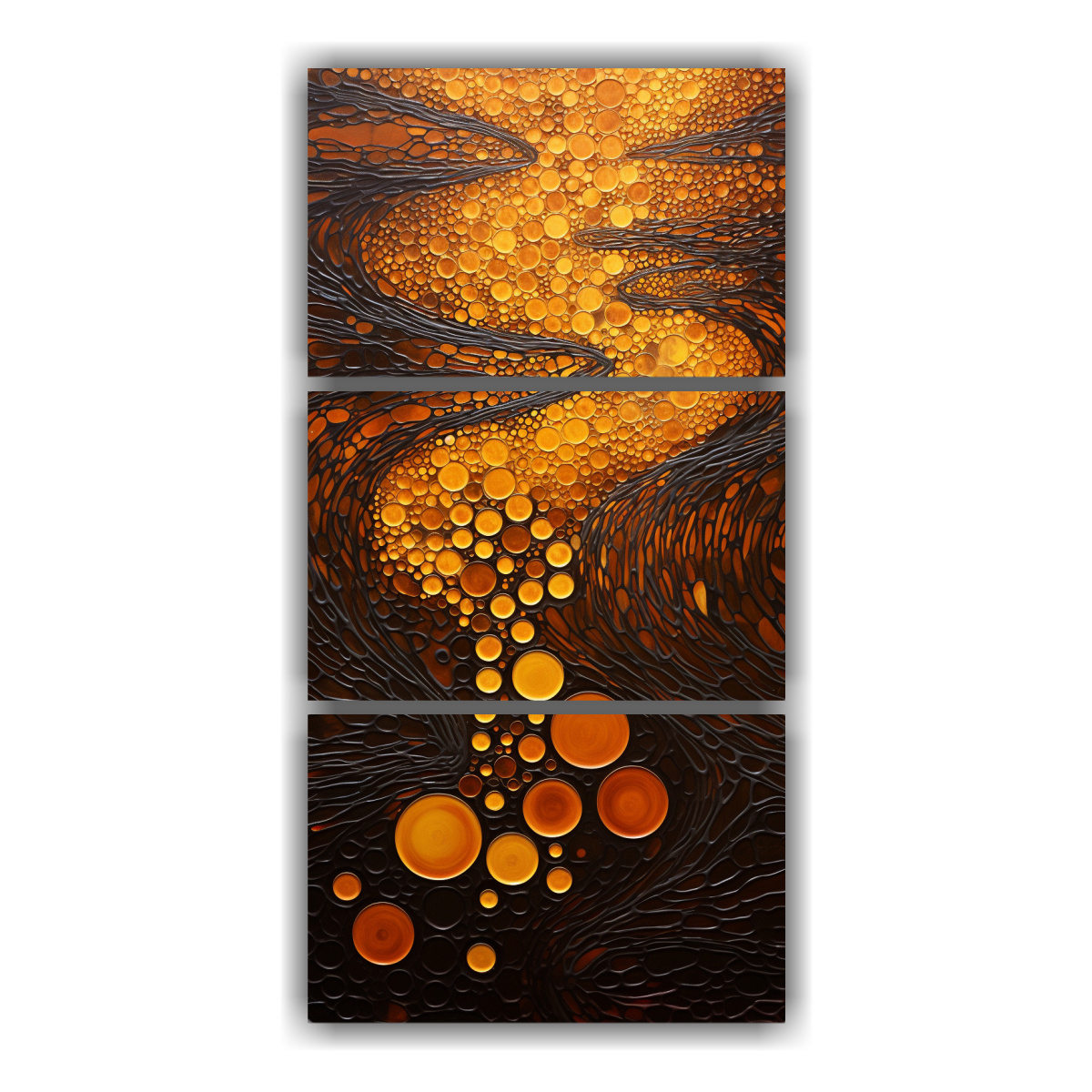 Decora tu oficina con estilo y elegancia con nuestro set de 3 pinturas estilo puntillismo luminoso Elige entre los colores mostaza, negro, chocolate, plateado, gris y dorado Calidad premium y precios económicos en DecoCuadros