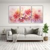 Set 3 Telas Abstractas Intensas Con Flores De Dahlias En Colores Oro Y Rosa