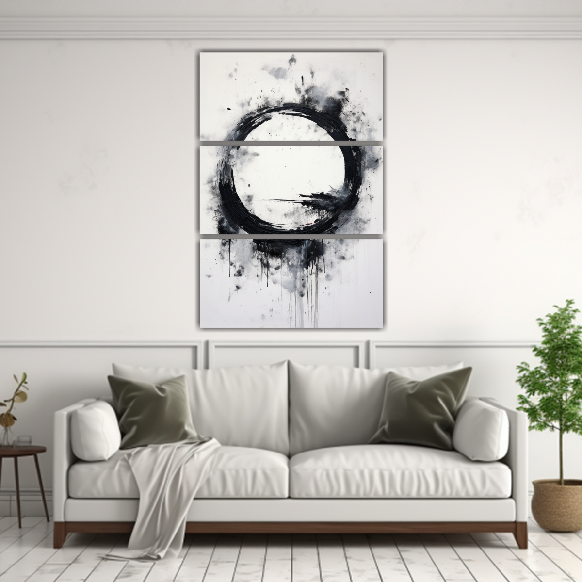 Este set de 3 telas en bastidor con movimiento luminosa, círculo blanco con escritura china, es ideal para decorar tu sala de estar o tu dormitorio Colócalo sobre una pared de tonos neutros y combínalo con muebles en tonos beige o grises para crear un ambiente elegante y armonioso También puedes colocarlo sobre un mueble en tonos plateados para resaltar su brillo y estilo único ¡Atrévete a darle un toque de sofisticación a tu hogar con este maravilloso set de cuadros decorativos!