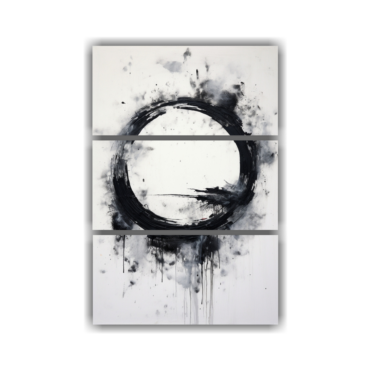 Set 3 Telas Bastidor Movimiento Luminosa Círculo Blanco Con Escritura China