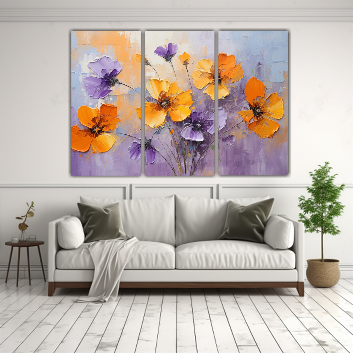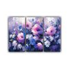 Set 3 Telas Bastidor Tema Época Flores Púrpura Y Naranja En Lienzo