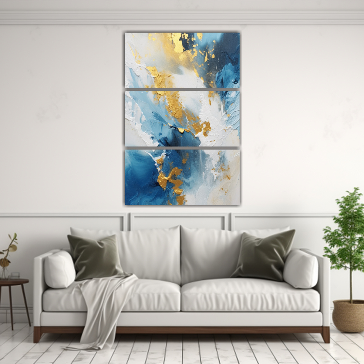 Decora tus espacios con el Set 3 Telas en Bastidor Abstractas en Tono Blanco y Azul Intenso con Pintura Acrílica La mejor calidad y precios económicos solo en DecoCuadros