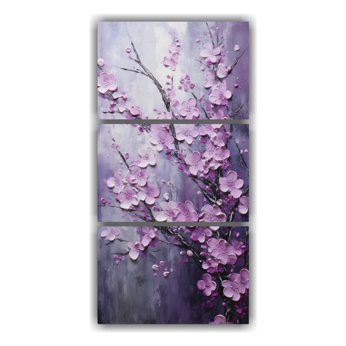 Set 3 Telas En Bastidor Alta Calidad Escenario Flores Cerezo Morado Pintura Sobre Lienzo