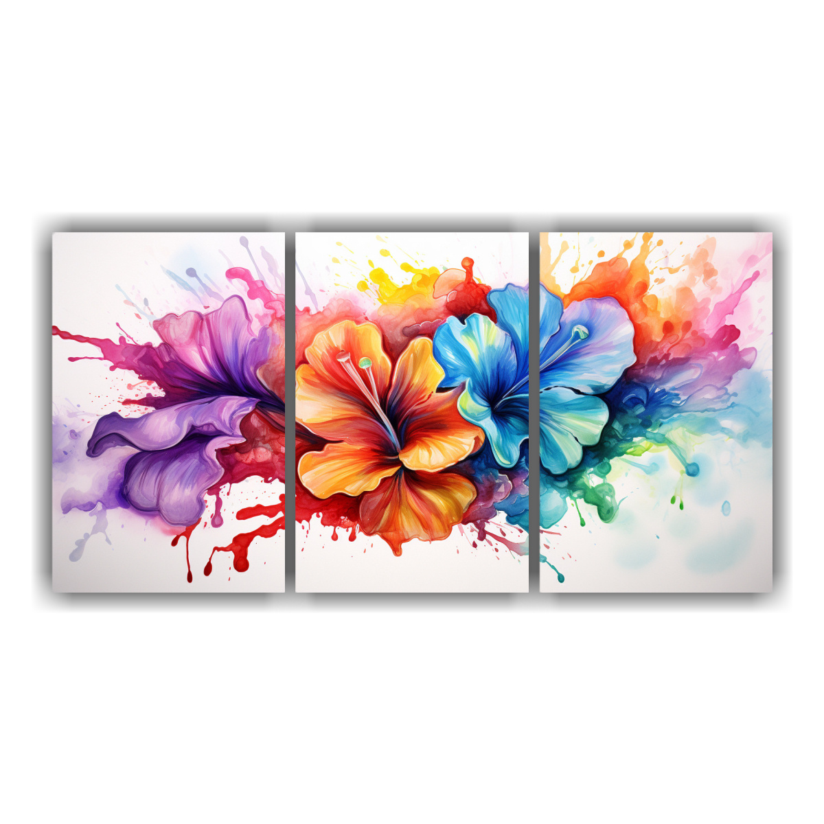 DecoCuadros ofrece el Set 3 Telas en Bastidor Colores Contraste Abstracto Pintura Acuarela A Geranium Rainbow Este cuadro está impreso en tela de alta calidad y montado en un bastidor de madera Los colores disponibles son Azul Marino grisaceo, Carmesí, Beige, Coral, Lila, Turquesa, Plateado, Gris y Amarillo Claro Nuestros cuadros tienen diseños exclusivos y son perfectos para decorar cualquier espacio Ofrecemos la mejor calidad del mercado y los precios más económicos Realizamos entregas rápidas y gratuitas en Santiago, y envíos express a regiones