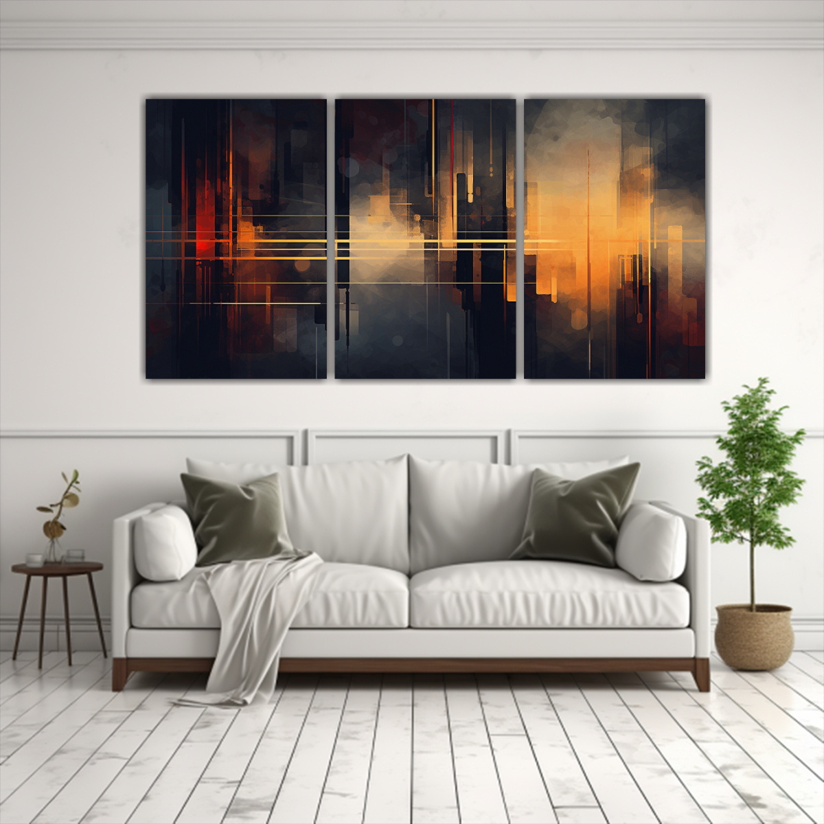 Coloca el Set 3 Telas en Bastidor Horizontal Clásico con Fondo Abstracto Pintado al Estilo de las Pinturas Decorativas en tu sala de estar para agregar un toque de sofisticación y estilo Combina estos colores vibrantes con muebles neutros para crear un ambiente equilibrado y moderno También puedes ubicarlo en tu dormitorio para darle vida a tu espacio personal ¡Aprovecha nuestra oferta y adquiere este set de cuadros con entrega rápida y gratuita en Santiago!