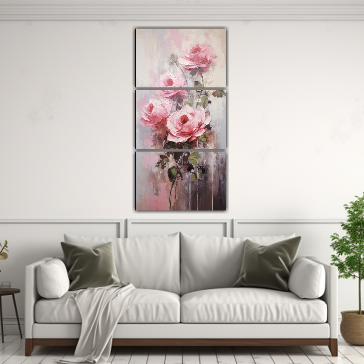 Recomendamos colocar el Set 3 Tonos de Textura Rosas en un cuadro al estilo de la pintura en el salón de tu hogar, justo encima del sofá Este cuadro combina perfectamente con muebles de colores neutros como beige o gris, creando un ambiente elegante y sofisticado También puedes colocarlo en tu dormitorio, como pieza central en la pared detrás de la cama, para darle un toque de color y estilo a tu espacio de descanso