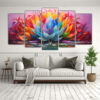 Set 5 Artes Estilo Galeria Vida: Pintura De Loto Con Colores Del Arcoíris En Lienzo.