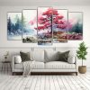 Set 5 Artes Tema Bonito Pintura Abstracta De Una Pintura De Pino En Colores Rojo Y Azul