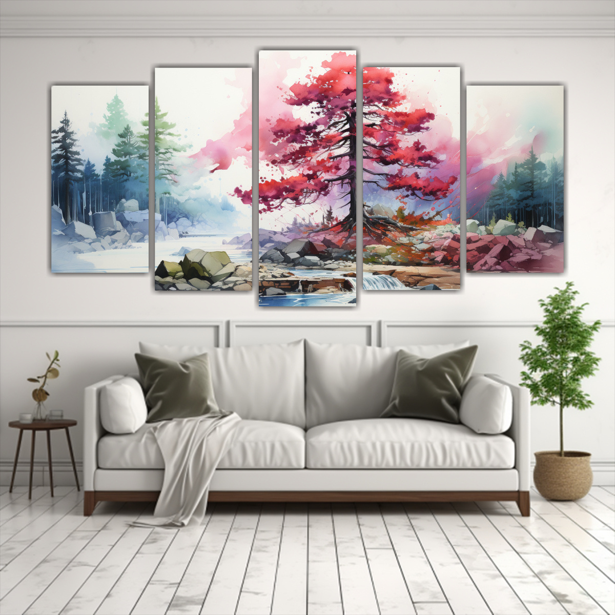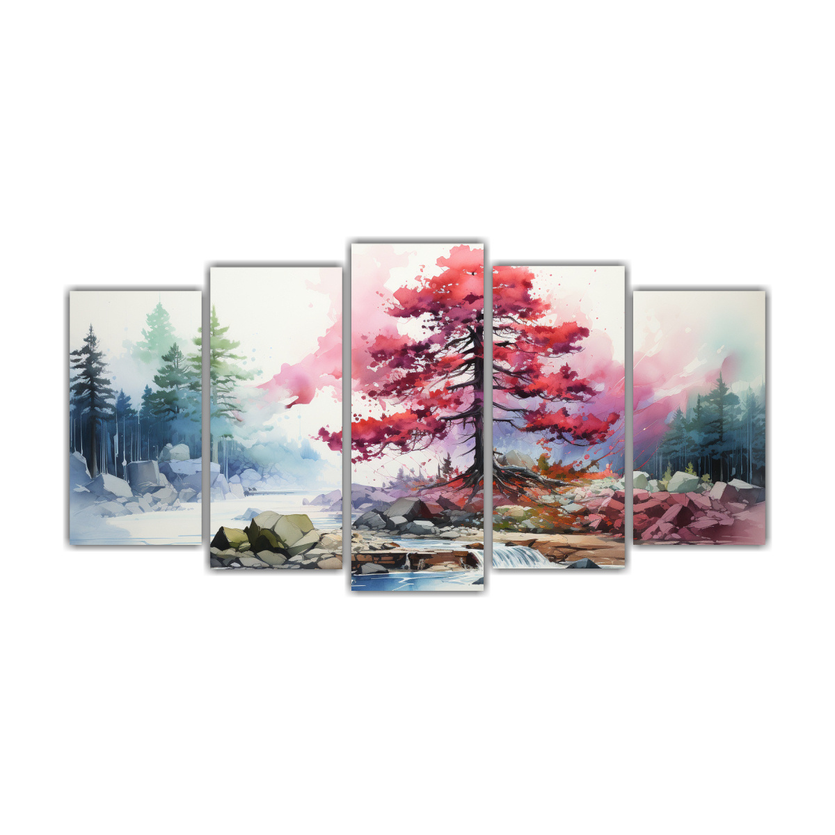 DecoCuadros tiene disponible el Set 5 Artes con tema bonito de pintura abstracta de una pintura de pino en colores rojo y azul Estos cuadros decorativos están impresos en tela de alta calidad y cuentan con bastidores de madera que aseguran su durabilidad Obtén diseños exclusivos y entrega rápida y gratuita en Santiago