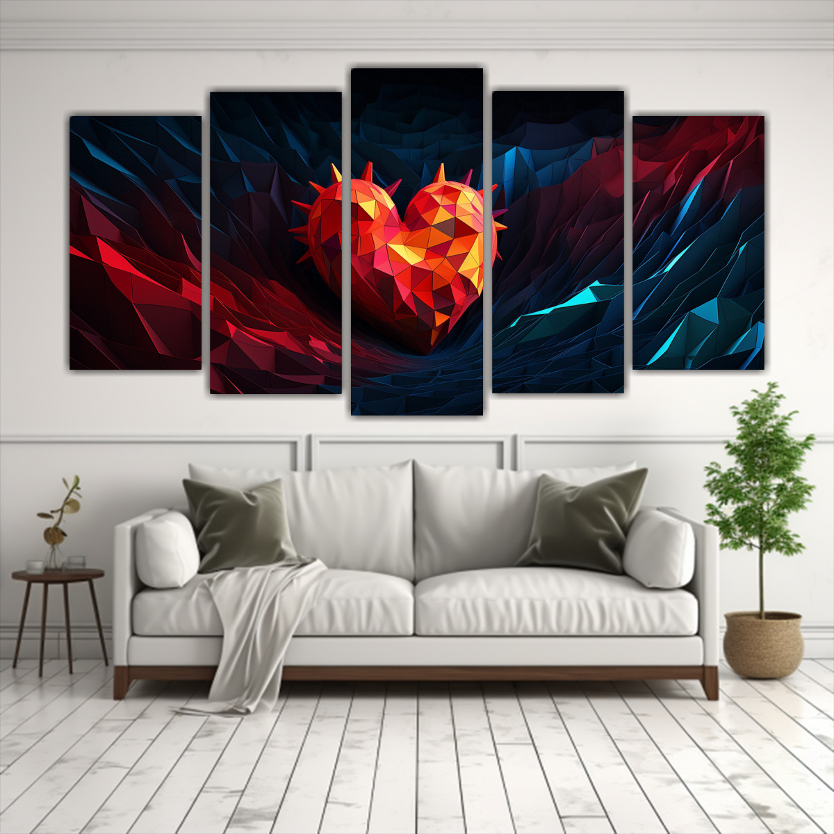 Set 5 Cuadros Conceptual Interiores Ritmo Abstracto Del Corazón