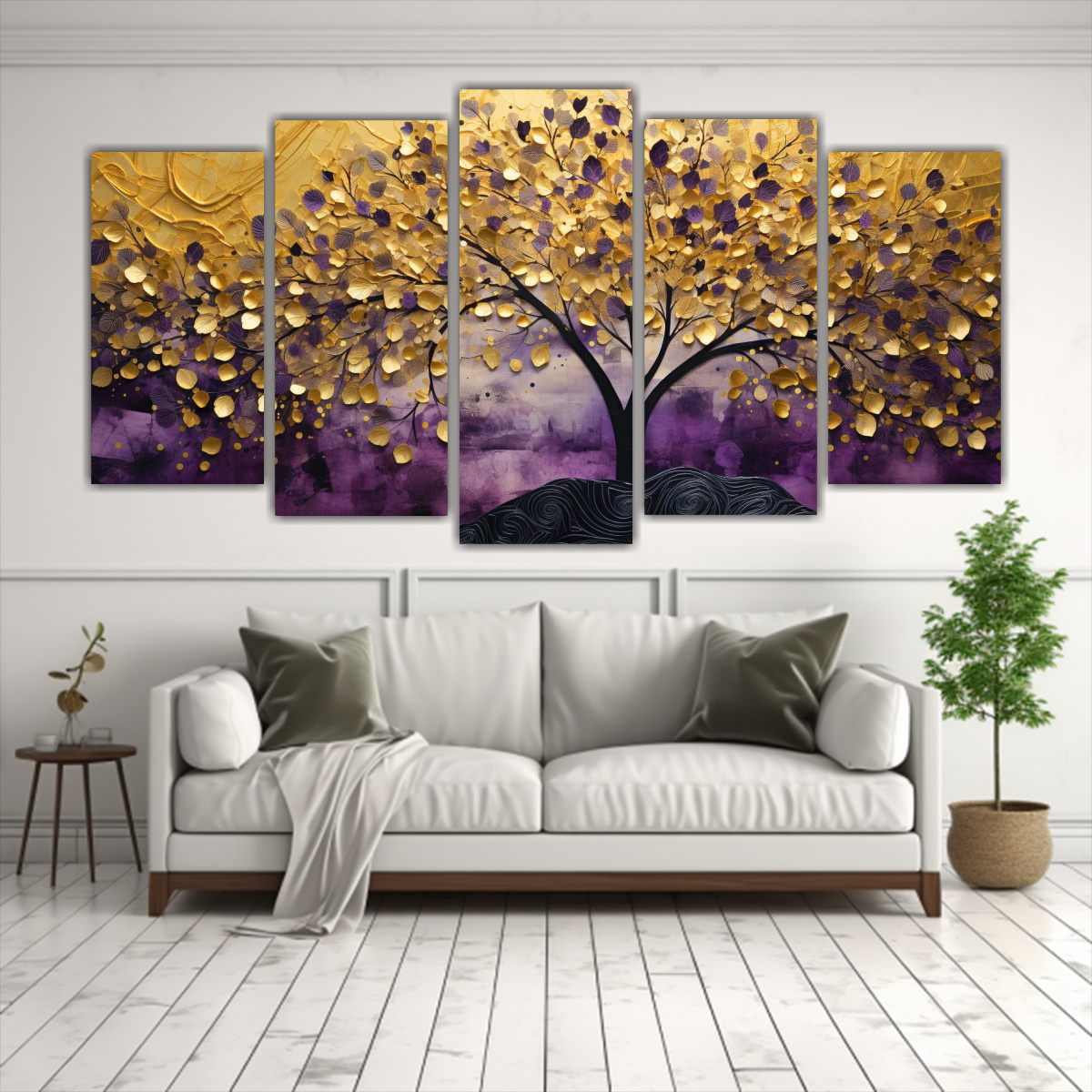 Decora tus espacios con el Set 5 Cuadros de Lienzo Horizontal que cuenta con una impresionante imagen del árbol en Morado y Amarillo La mejor calidad y precios económicos en DecoCuadros