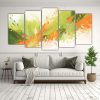 Set 5 Cuadros De Tela Movimiento Riqueza Visual Colores Verde Y Naranja Atmósfera Neonoir Estilo Decorativo.