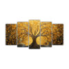 Set 5 Cuadros Elegantes Para Sala Árbol En Negro Y Dorado