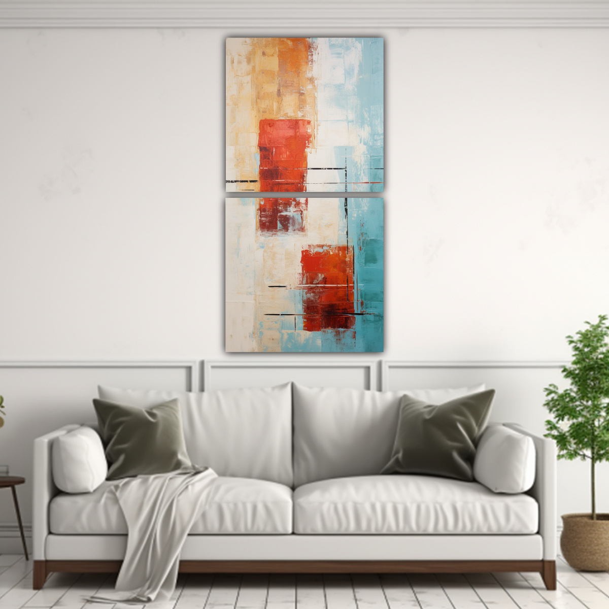 Decora tus paredes con estilo con nuestro set de 2 lienzos inspiradores Pintura abstracta con pinceladas de moda en colores carmesí, plateado, menta, coral, turquesa, azul marino grisáceo y gris Nuestros cuadros decorativos están impresos en tela de alta calidad, con bastidores de madera Contamos con diseños exclusivos y envíos express a regiones ¡Aprovecha nuestra oferta y dale vida a tus espacios!