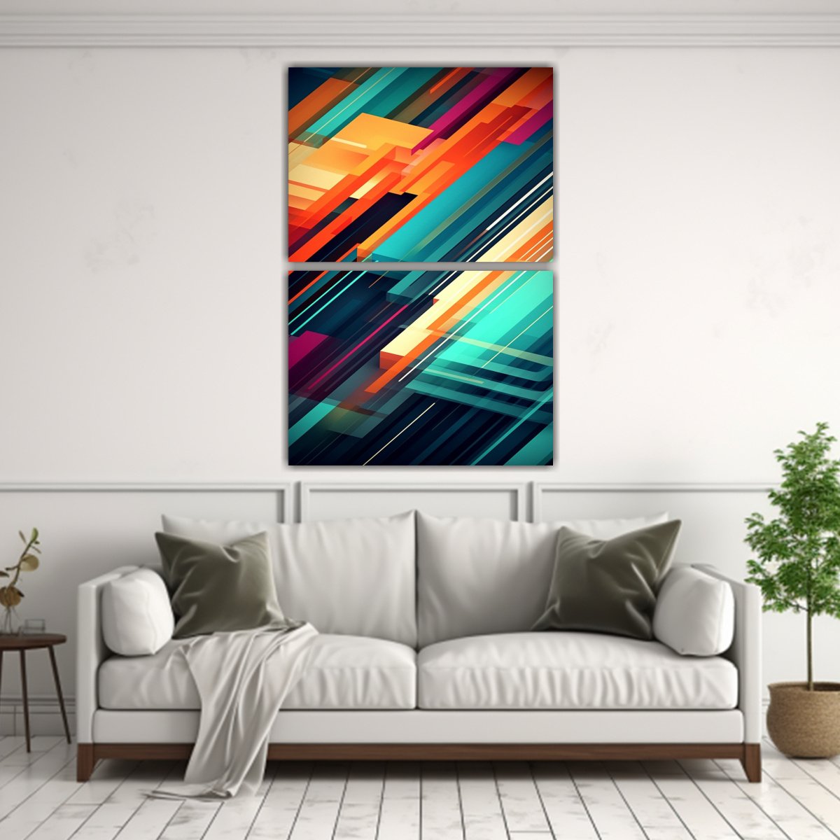 Set De 2 Telas En Bastidor Conceptual Arte Gráfico Digital Estética Arte Colores Alto Contraste Geométrico Ab