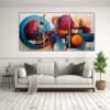 Este set de cuadros decorativos es perfecto para colocar en una pared blanca o de tonos neutros, para que los colores vibrantes resalten y le den vida a la habitación Puedes colocarlos en el salón, en el dormitorio o en cualquier otro espacio que desees transformar en un lugar alegre y moderno Combínalos con cojines, alfombras o cortinas en colores similares para crear una armonía visual y lograr un ambiente acogedor y lleno de estilo