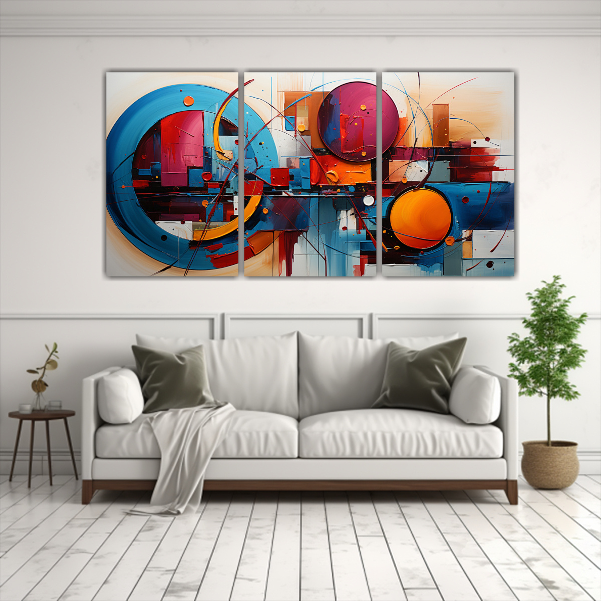 Set De 3 Cuadros Decorativos: Pintura Abstracta Multicolor En Tres Diseños Diferentes