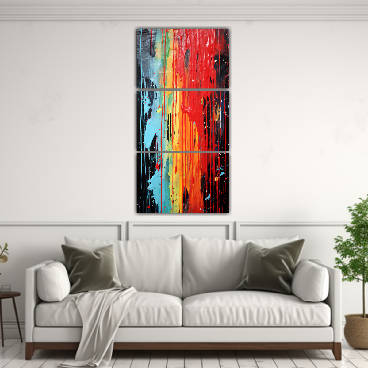 DecoCuadros ofrece Set de 3 Lienzos Decorativos estilo expresionismo abstracto en técnica de pintura por goteo Calidad premium y precios económicos Envío gratis en Santiago y envíos express a regiones