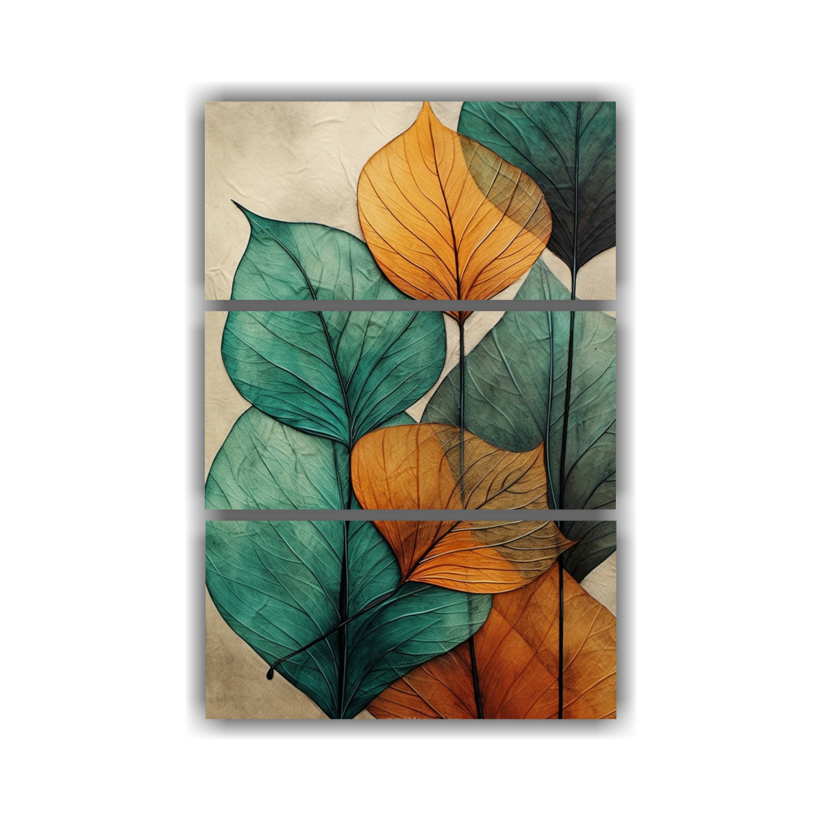 Set De 3 Telas En Bastidor Cuadro Multicolor De LineArt Y Acuarela Cuadro De Hojas
