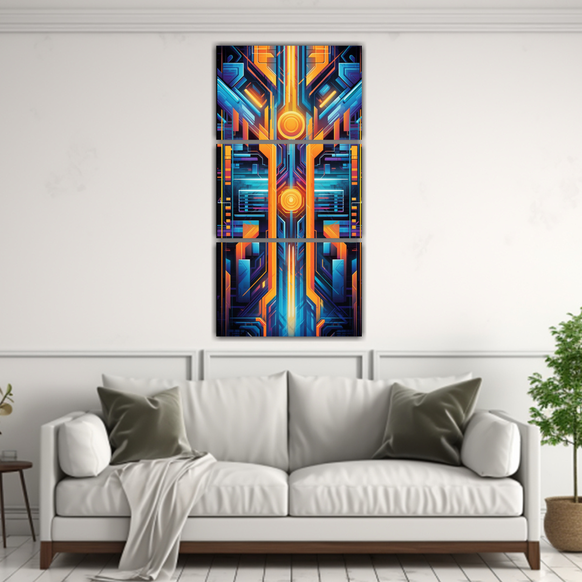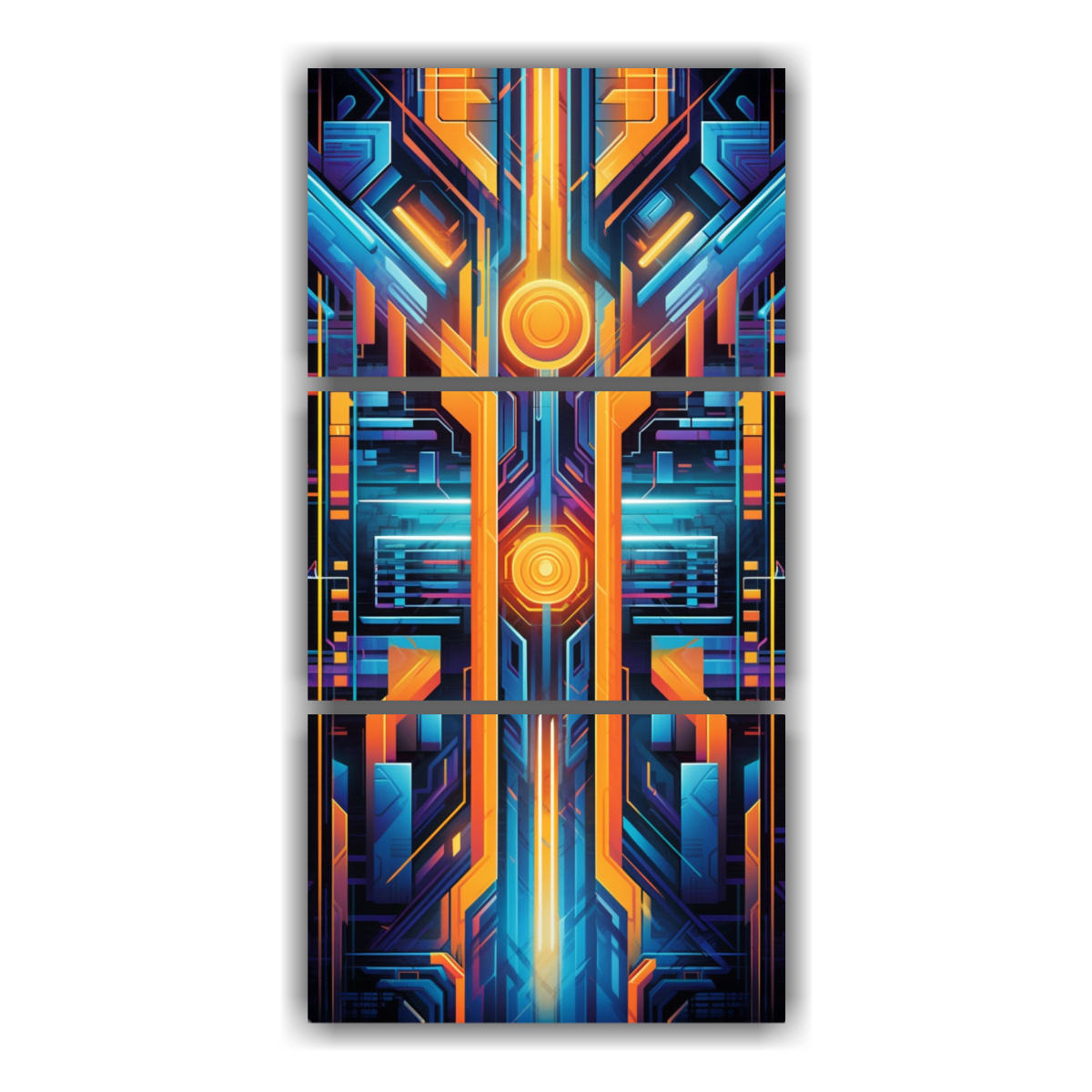 Estos cuadros de Retro Futurismo lucirían perfectos en un ambiente moderno o minimalista, creando un punto focal en tu sala de estar o estudio Colócalos juntos como una tríptico o separados para un toque de color y sofisticación ¡Atrévete a decorar con estilo!