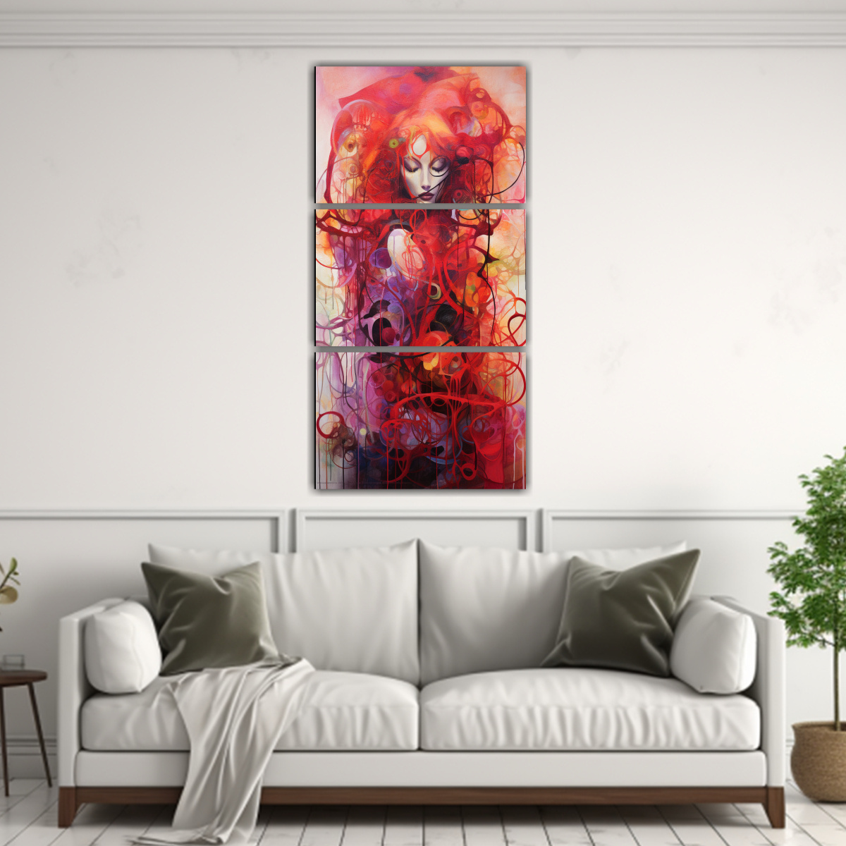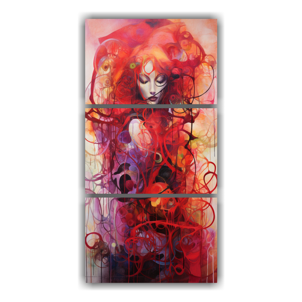 Este cuadro sería perfecto para decorar una sala de estar o un dormitorio en tonos neutros como blanco o gris Su combinación de colores vibrantes como el Carmesi, Coral y Lila le dará vida a cualquier ambiente Puedes colocarlo sobre un sofá o una cama para crear un punto focal en la habitación ¡Atrévete a añadir un toque de alegría y emoción a tu espacio con este cuadro emocional simétrico abstracto!