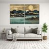 Tapiz Minimalista De Montañas Y Luna En Estilo Diptico Cálido.