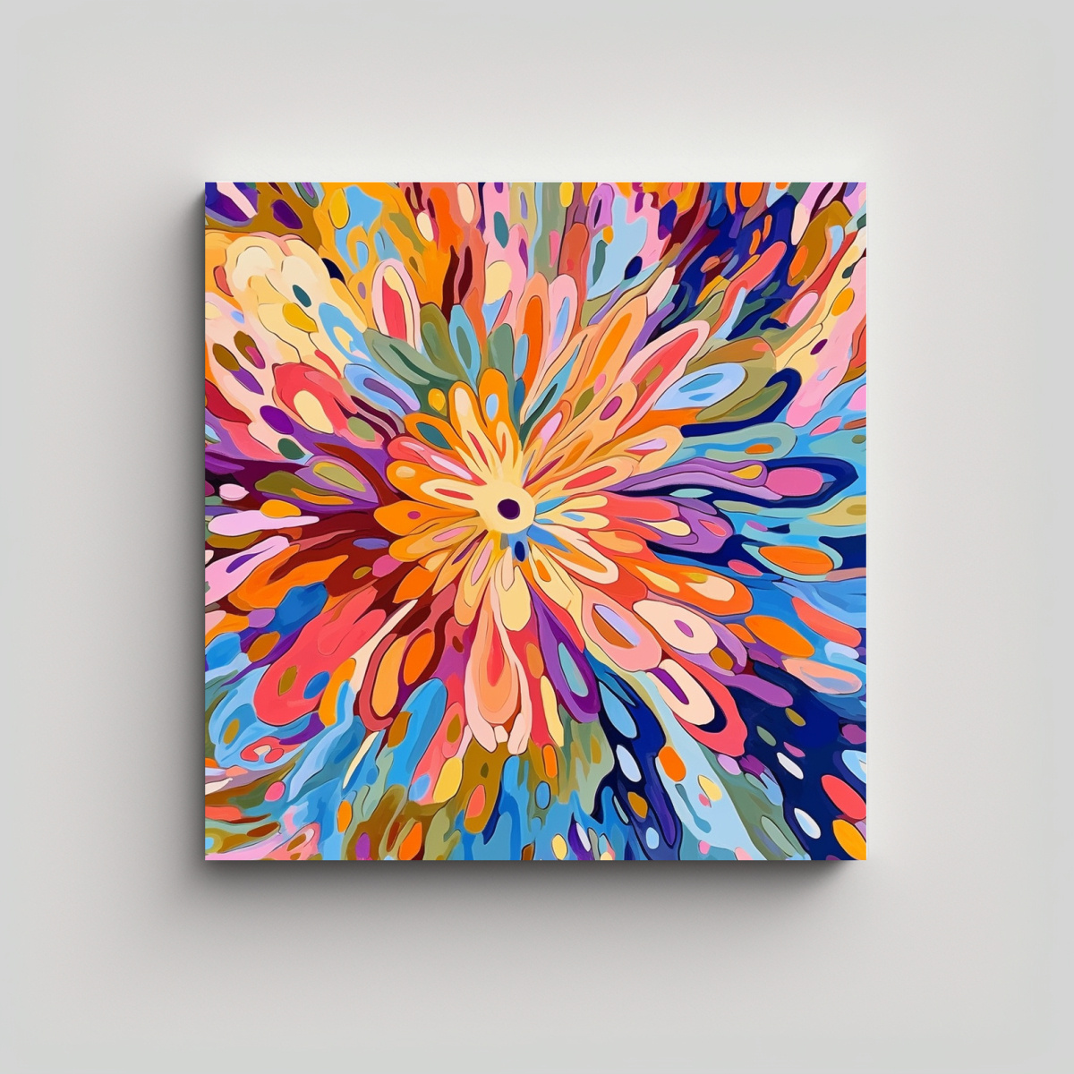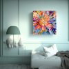 Este cuadro es ideal para decorar un dormitorio o sala de estar con una temática moderna y vanguardista Combínalo con muebles en tonos neutros como el blanco o gris claro, y complementa la decoración con cojines y cortinas en tonos coral, amarillo claro y turquesa ¡Crearás un ambiente único y lleno de energía positiva!