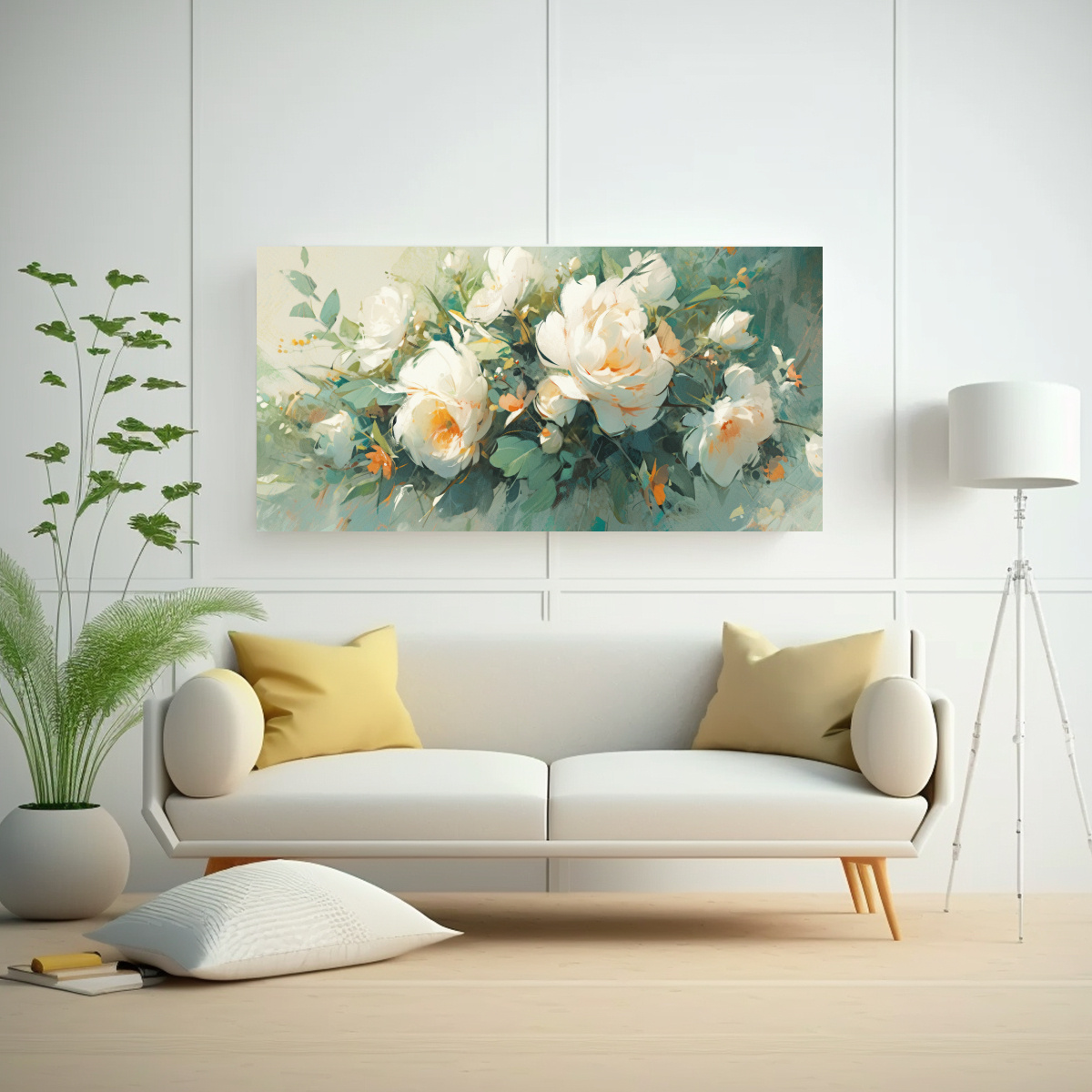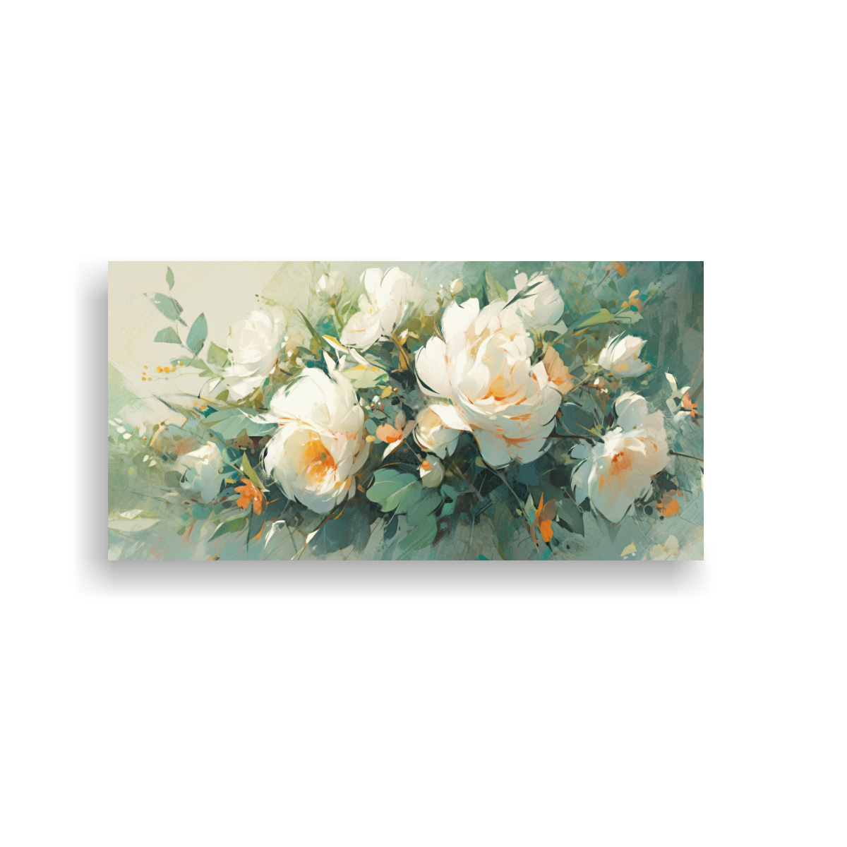 Tela En Bastidor Diseño Calma: Pintura De Flores En Tonos Verde Y Dorado Sobre Lienzo En Pinturas Decorativas