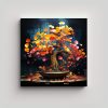 Tela En Bastidor Ginkgo Biloba Bonsái Turquesa Y Oro