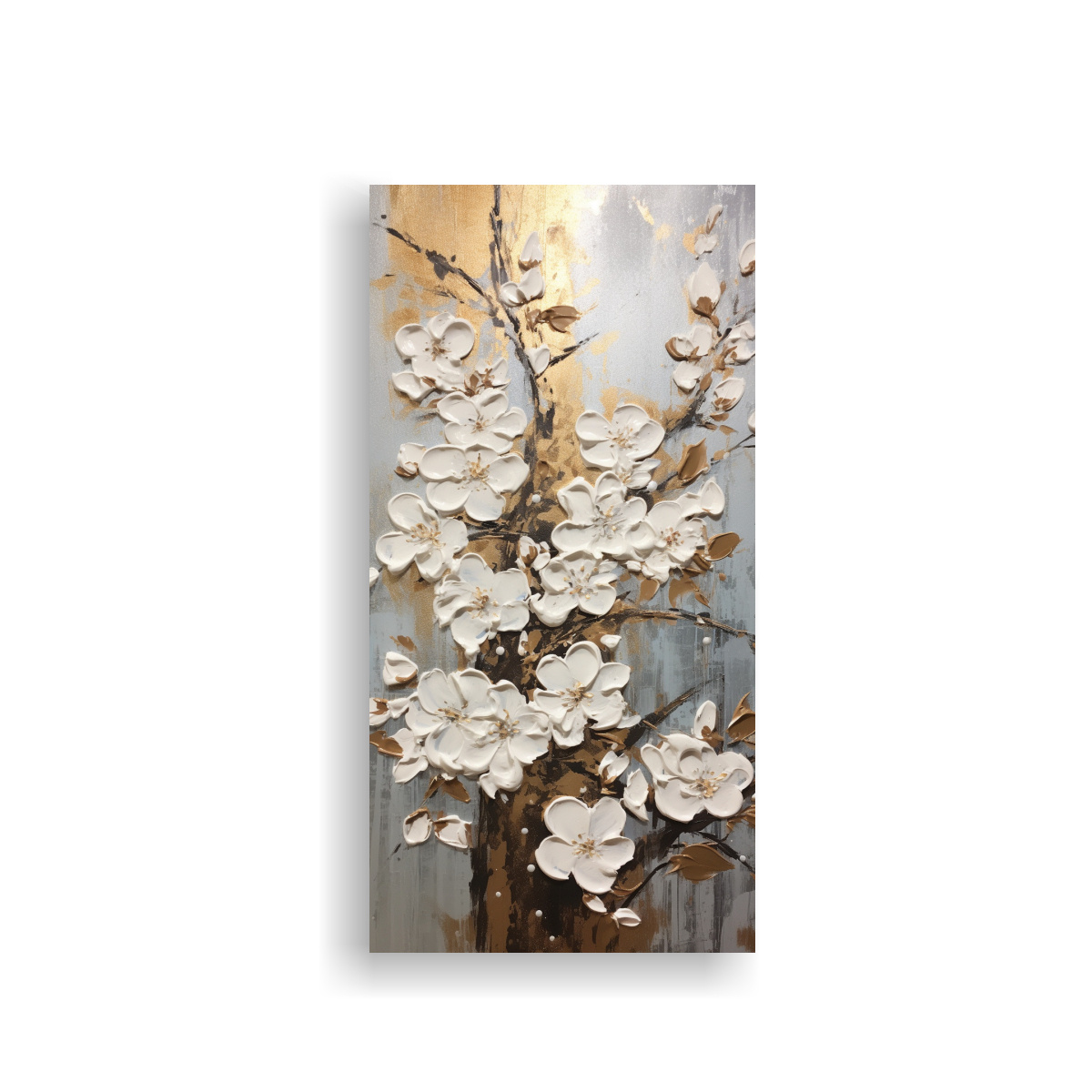 Decora tu hogar con el cuadro Tela en Bastidor Hermoso Estilo de Pintura de Flores de Cerezo en Dorado, hecho con los mejores materiales y diseños exclusivos